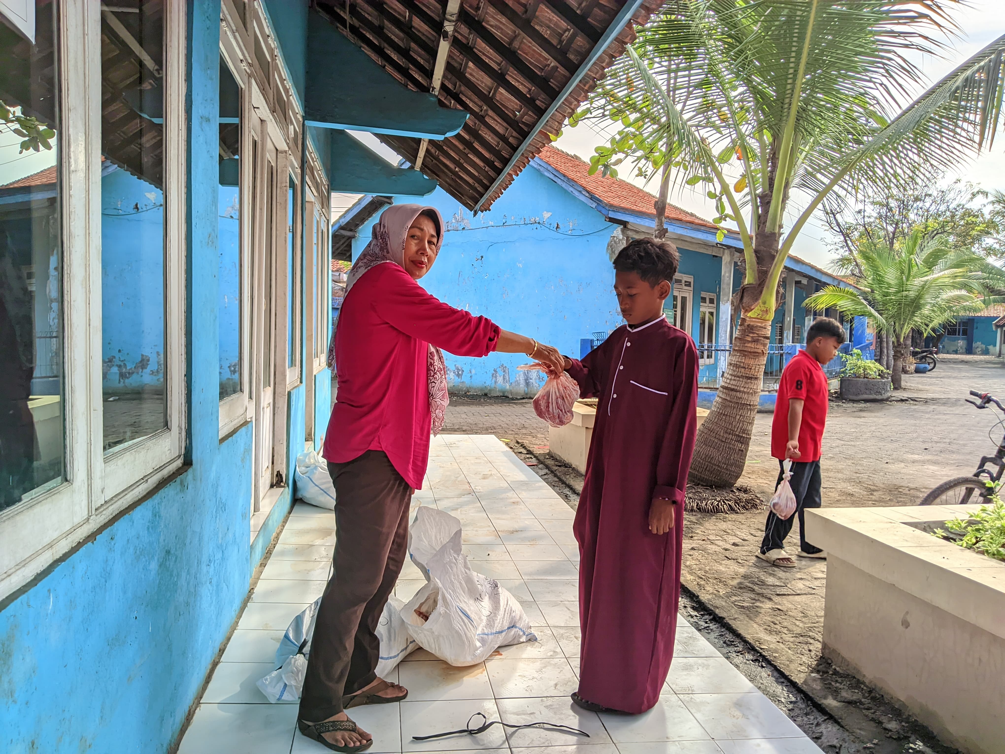 Penyerahan Daging Qurban Kepada siswa dan staf SD Barunawati